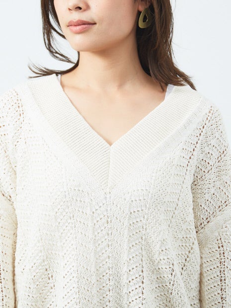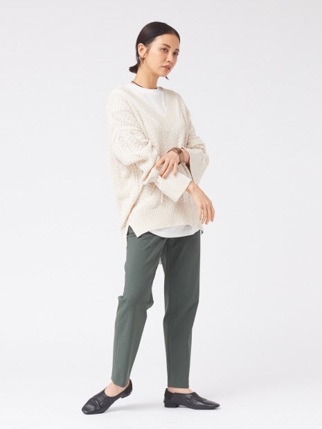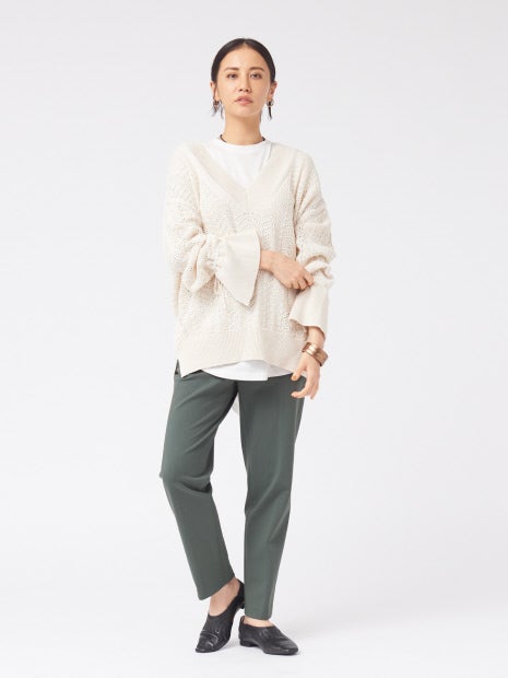 ザックリ広めのVネックがヘルシーな女性らしさを演出します。