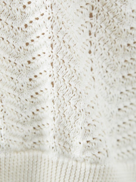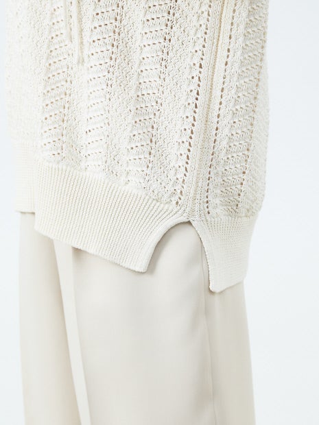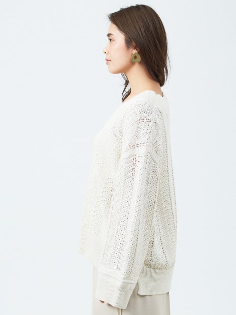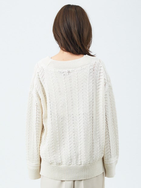 ドライタッチな綿素材とナイロン糸のループヤーンでへリンボン柄に編み上げたオリジナリティ溢れるニットです。