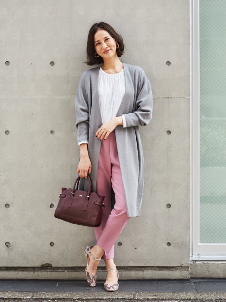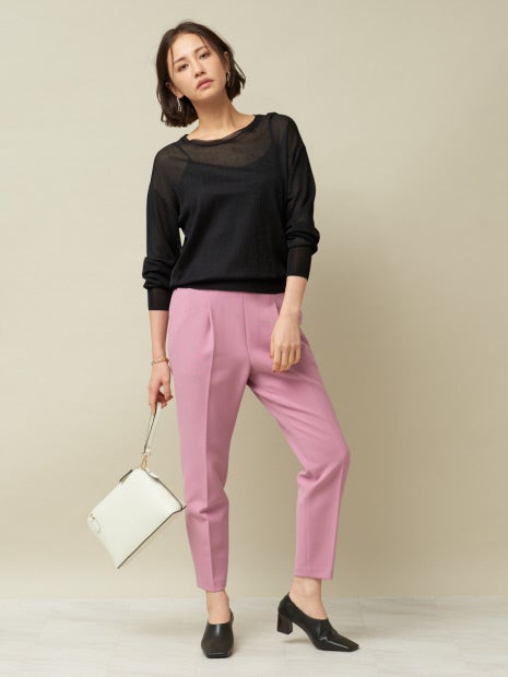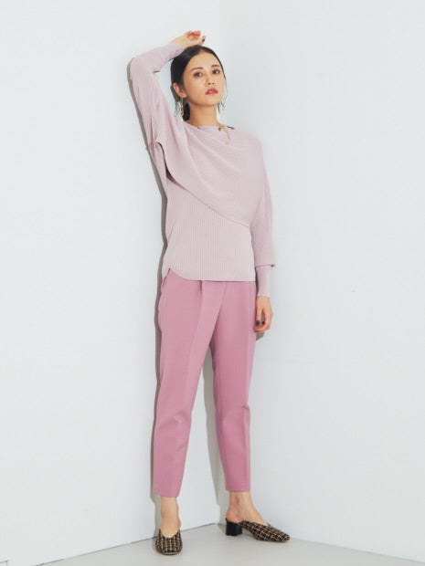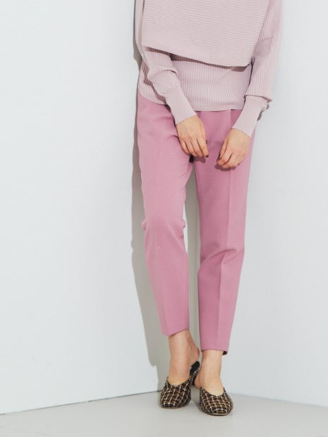 今年はカラーパンツにも注目。くすみのあるピンクなので大人女性にもおすすめ!