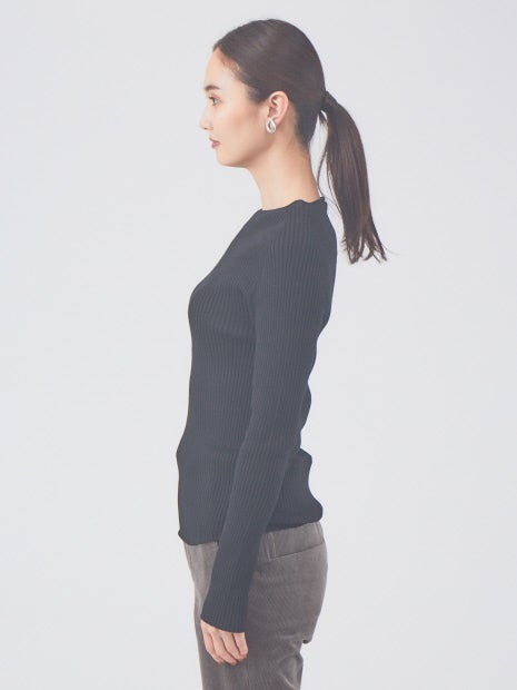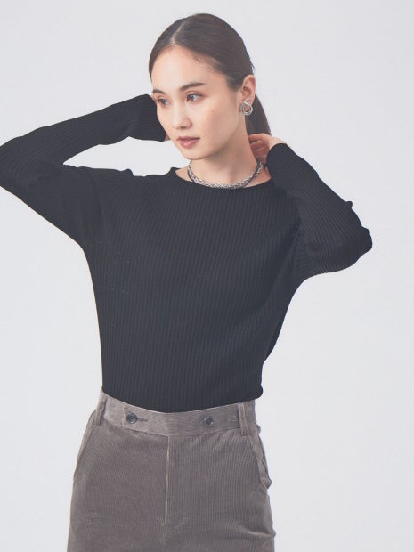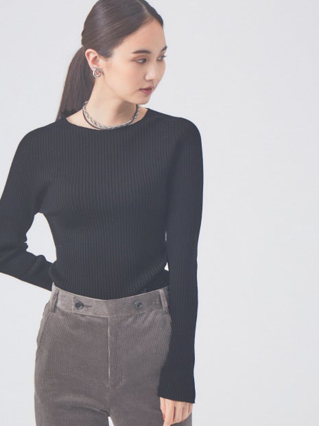 程よいフィット感で一枚での着こなしが叶う細身ニット。