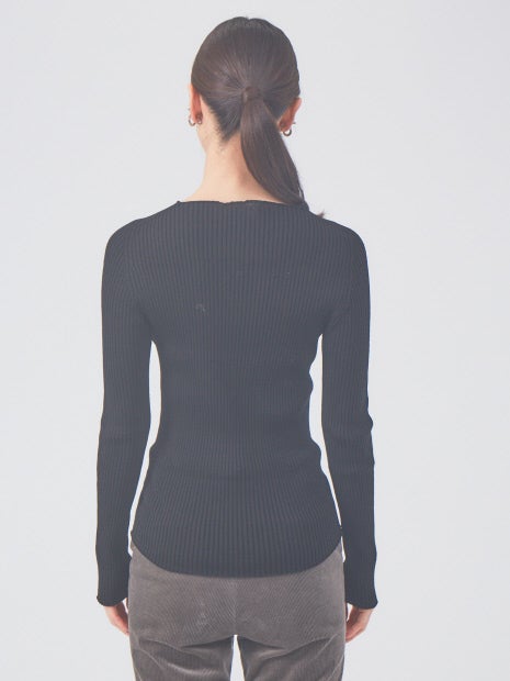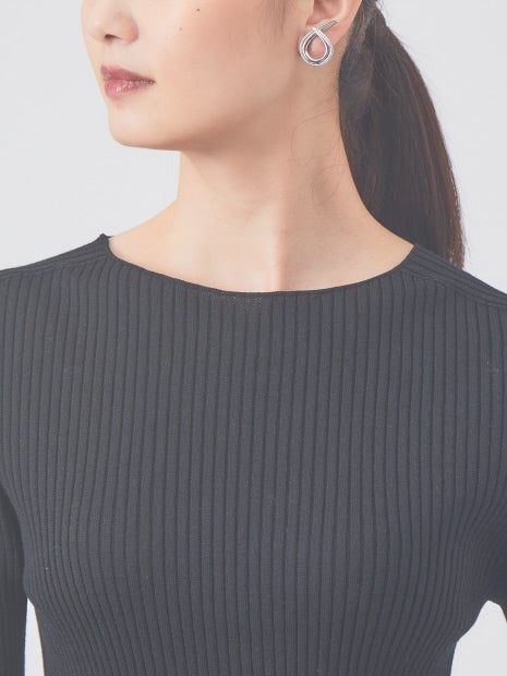 程よくボート気味のネックで開き感があり、抜け感のある印象に。