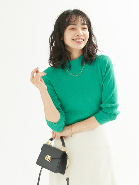 ハイネックデザインできちんと感があり、通勤トップスとしてもおすすめ。