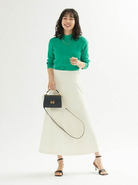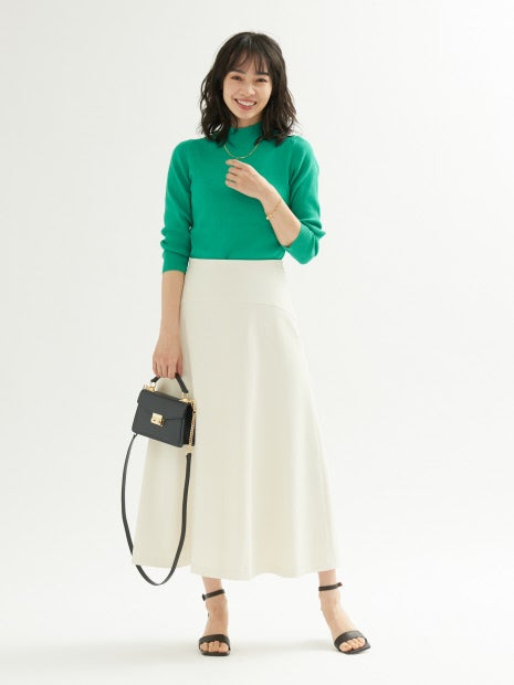 シンプルなデザインのハイネックニットは、春のワードローブに揃えておくと便利。