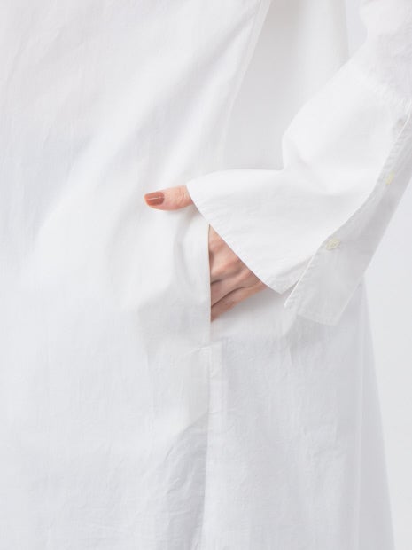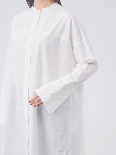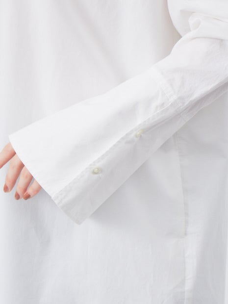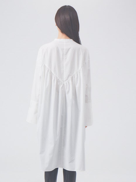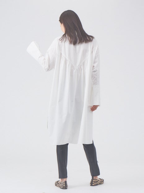 程よくハリ感のある軽めのタイプライターの素材でギャザーをたっぷり入れたシャツワンピ。