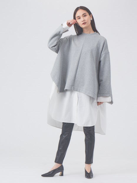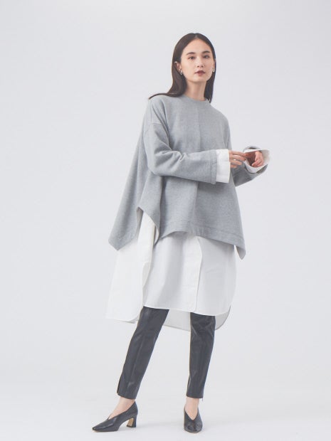 裏毛ポンチョプルオーバー(No.32430020007)とのレイヤードスタイルがおすすめ。