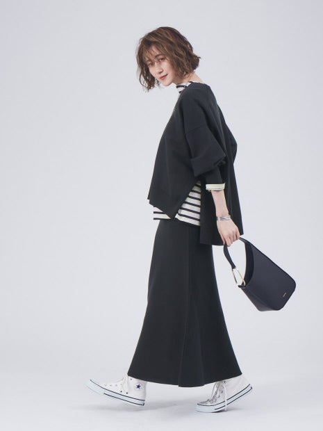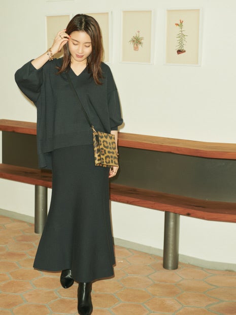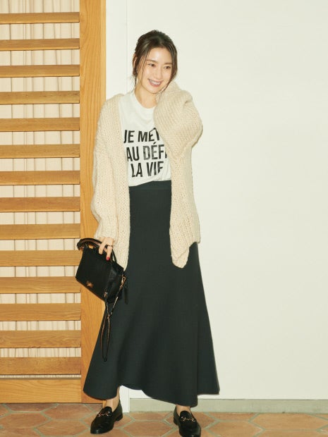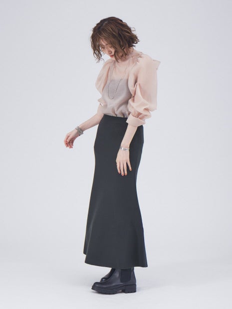 マーメイドシルエットで女性らしく穿けるニットスカート。
