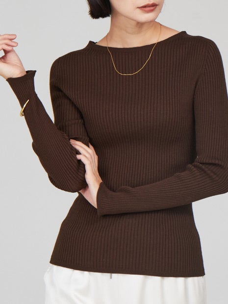 開き過ぎないボートネックにしたことで、インナーも見えにくく、女性らしい印象に叶えます。