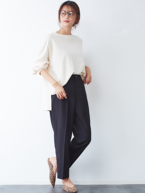 すっきりとしたパンツスタイルの他、スカート合わせもおすすめです!