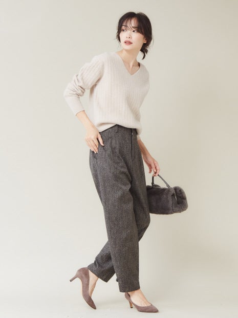 qualite定番のベーシックVネックニットは、通勤・休日とシーンを選ばず活躍!