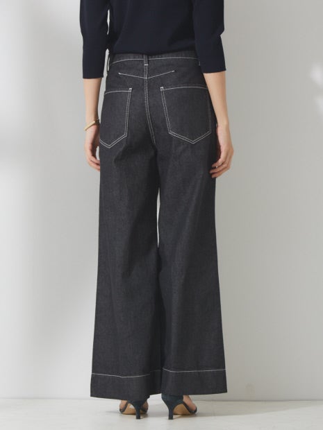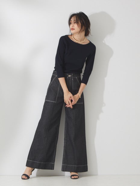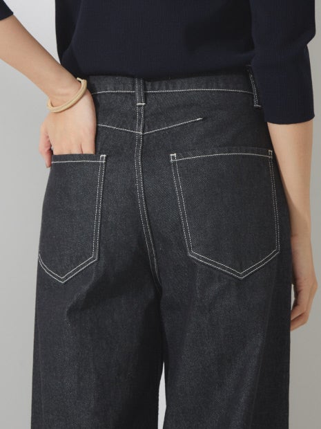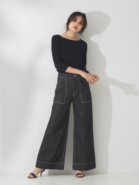 ベイカーパンツのディティールを取り入れた配色ステッチで、2019秋冬のトレンドでもあるミリタリーテイストをプラスしたワイドデニム。