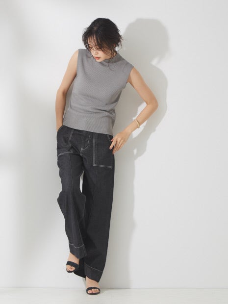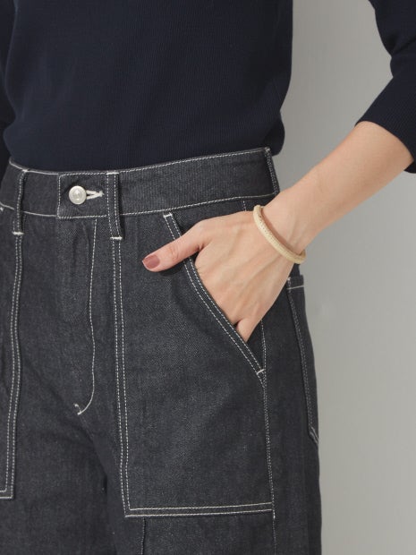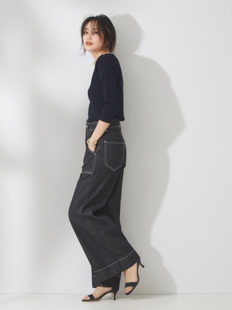 ベイカー風のミリタリー感やメンズライク感がありながらも、生地のハリやシルエットで品のある着こなしが叶う大人デニム。