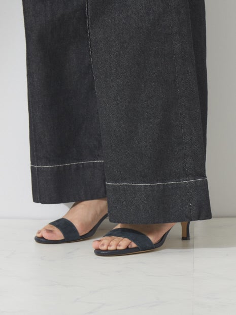 ハイウエストデザインとセンタープレスで美脚をキープ。また、後ろポケットを通常よりも高い位置に付けることで小尻効果も叶います◎