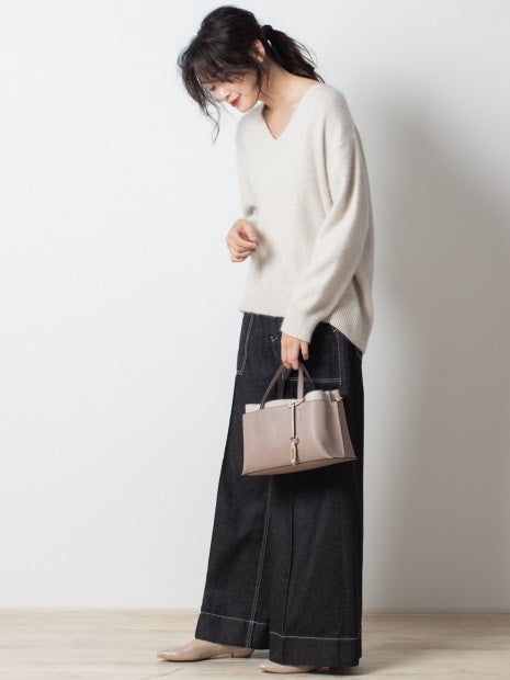 Tシャツやベーシックニットをインしたシンプルな着こなしも様になります。