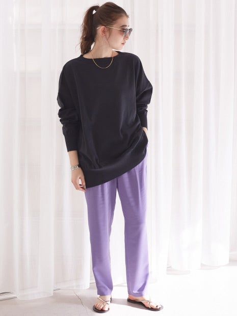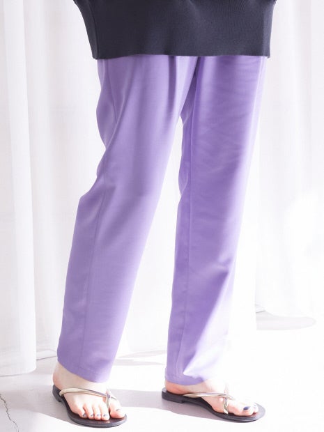 春注目のカラーパンツ。ピンクベージュ&ライラックは、ベーシックカラーのトップスと合わせて、パンツにポイントをおいたスタイリングがGOOD!