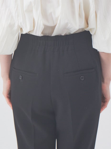ハイウエストで有りながら、ストレッチのある素材+後ろゴムで綺麗に脚長に見えながら、最適な穿き心地を実現。