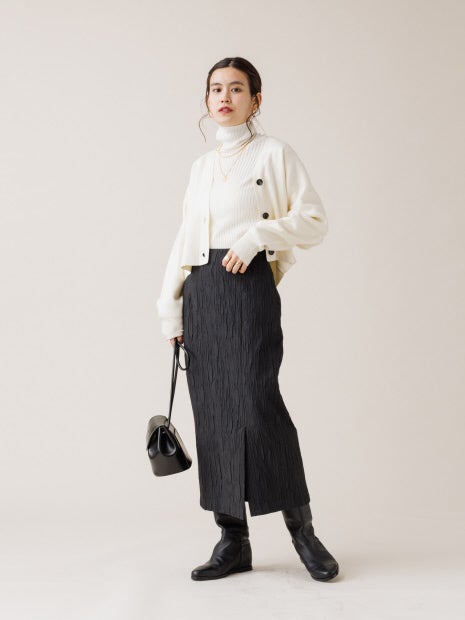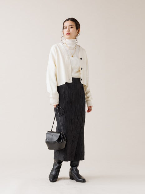 またワイドパンツやフレアスカートなど、ボリュームのあるボトムの羽織りにおすすめです。