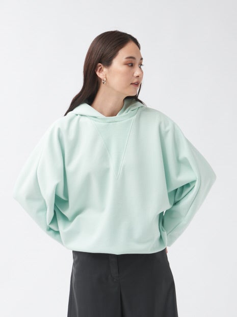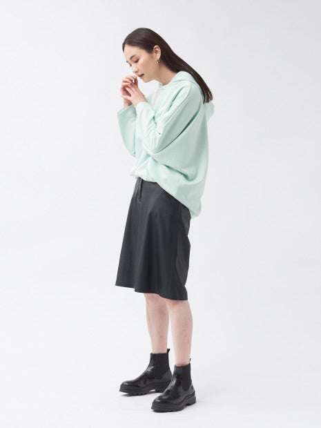 膨らみと光沢ある素材を使用し、カジュアル過ぎず、きれい過ぎず、気負わず着ていただけるパーカーを作りました。