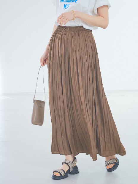 消しプリーツ加工はスカートっぽくも見えて動くたびに揺れて柔らかい印象に。