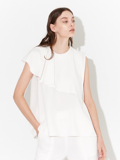 甘過ぎないシャープな印象のブラウスなので、単品使いは勿論、同素材のパンツ(35440550005)とのセットアップも今シーズンらしいスタイリングに。
