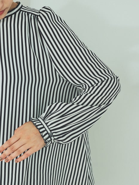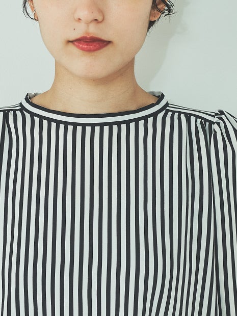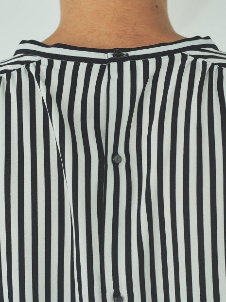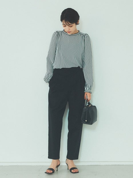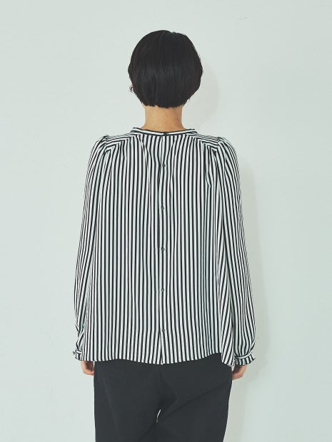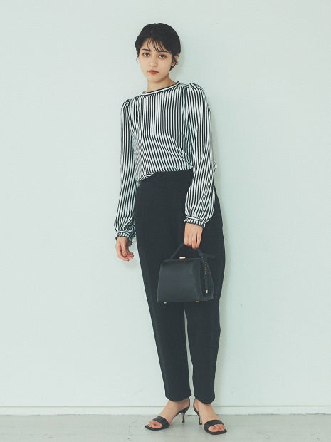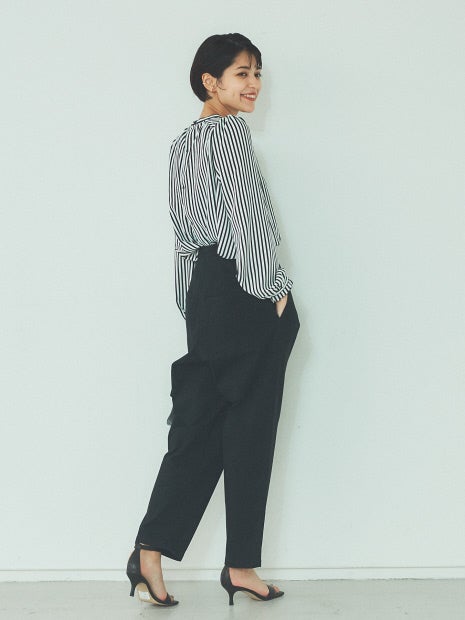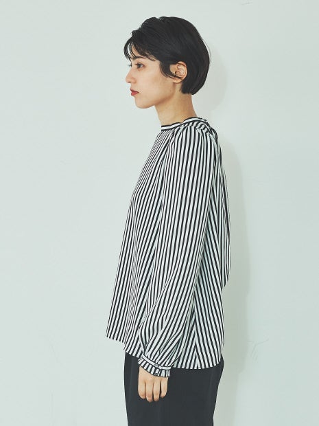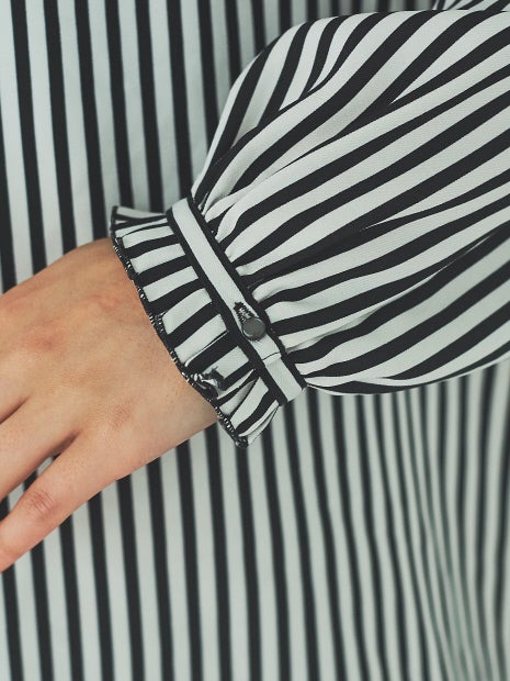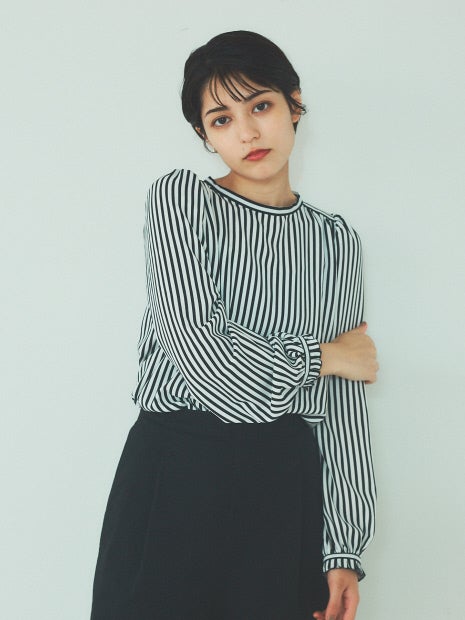 クラシカルフェミニンなデザインに、ストライプでシャープさをプラスした大人ブラウス。