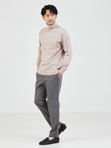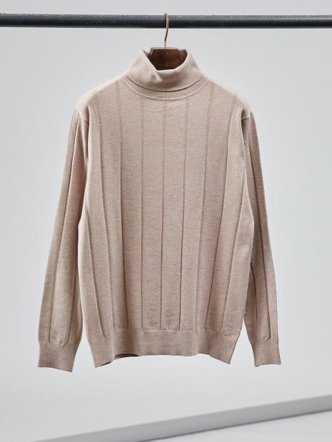 【カシミアタッチ】シャドーストライプ タートルネック ニット