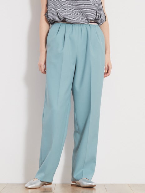 ツータックの腰周りがゆったりしたテーパードパンツ、着用時にきれいに見えるようギャザーの分量を部分毎で変化させました。