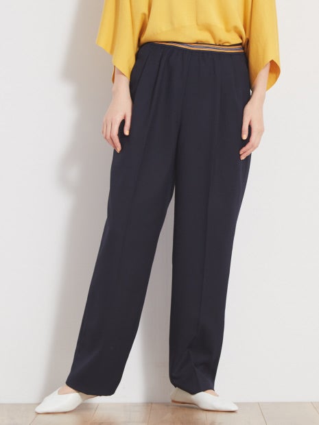 光沢感と落ち感のあるビスコースを使用したアイテム、ウエスト部分の配色がアクセントになるシリーズです。