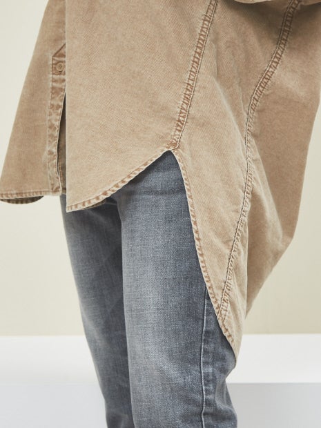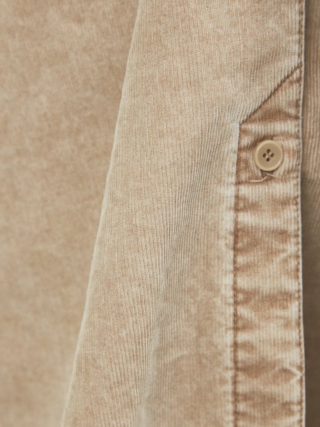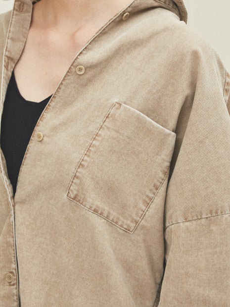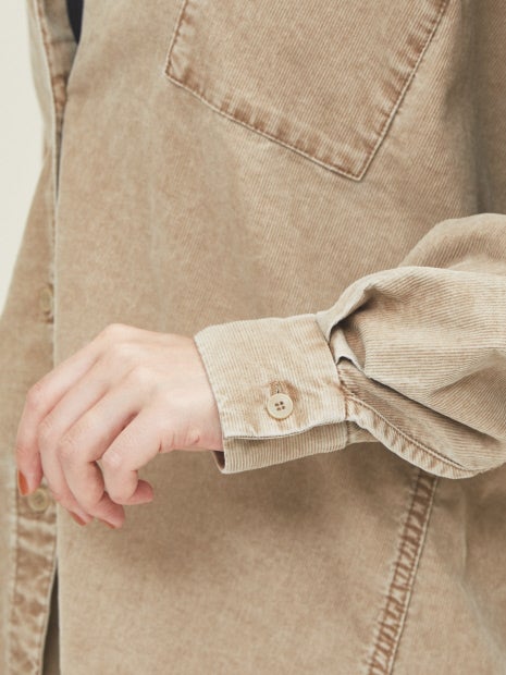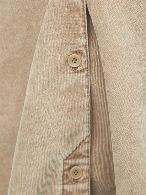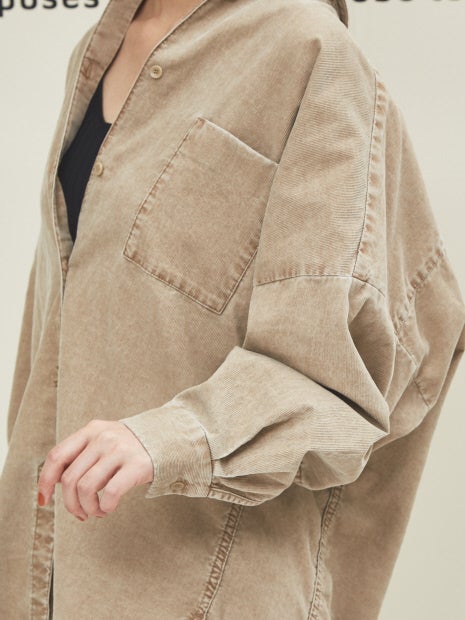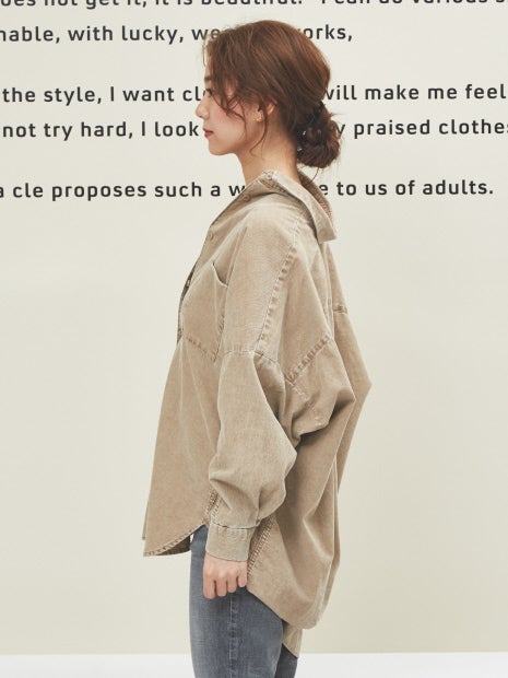 シャツコールを加工し、柔らかくヴィンテージ感あふれる風合いに仕上げたオーバーサイズシャツ。
