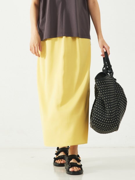 夏場はシンプルにTシャツ合わせでも上品にまとまります◎スッキリ縦ラインを活かし、ボリュームのあるトップスを合わせるのもおすすめです。