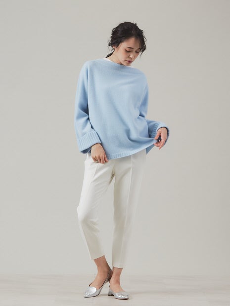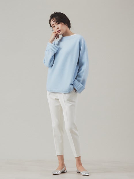 ・ボートネックで首回りをスッキリ見せ、女性らしさをプラスしました。