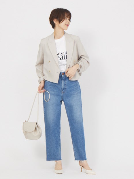 今年注目のショート丈がポイントで新鮮なバランスで気軽に軽く羽織れます。