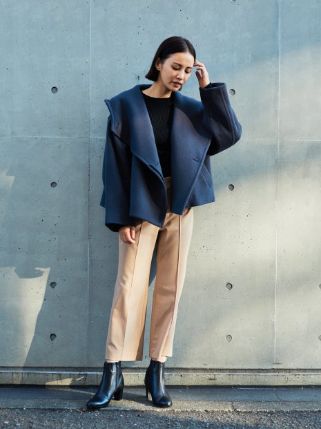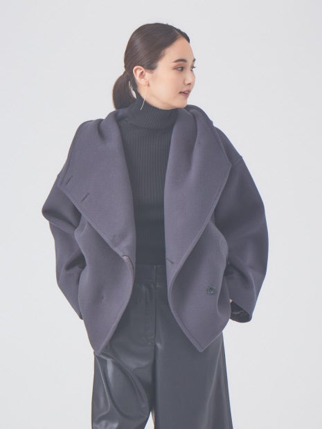 着るだけで立体感のあるシルエットが完成するショートコート。