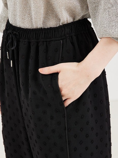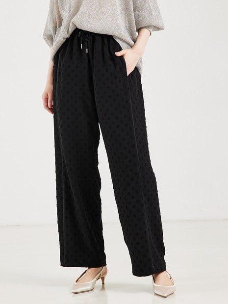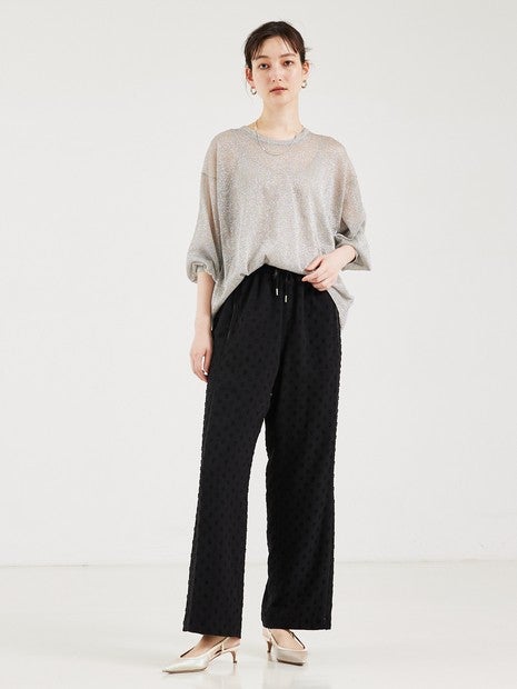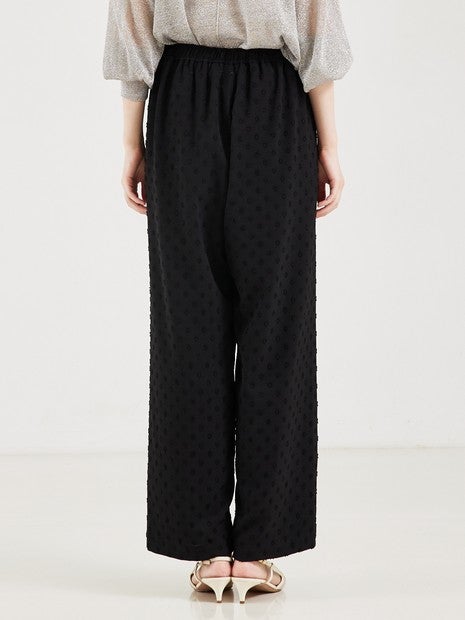 カットドビーのドット柄がポイントの、とろみイージーパンツ。