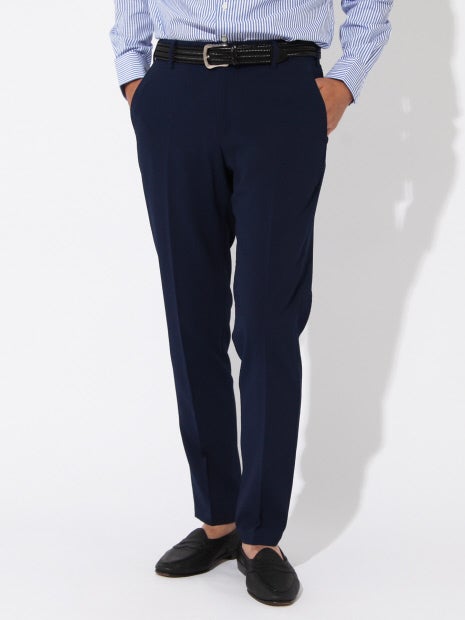 【素材】凹凸のあるドビー組織と2種の糸の染まり方の違いで奥行きのあるシャンブレーに仕上げた素材。軽量・ストレッチ・リンクルフリー・ウォッシャブルの多機能生地です。リンクルフリーとは?シワに強い形状記憶型の生地。湿気の多い環境や場面でもシワになりにくいのが魅力。【デザイン・コーディネート】ウエストサイドゴム付のタイトシルエットパンツ。同素材でジャケットもございます。(品番:0340082012)セットアップスタイルは勿論、カジュアルにも穿けるデザインなので、スキッパーシャツやポロシャツと合わせたコーディネートもオススメです。※アイテムはサンプルになります。製品はボタンが変更となります。予めご了承ください。