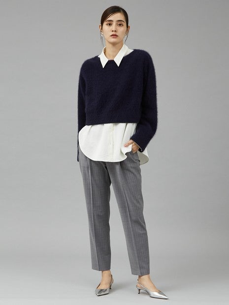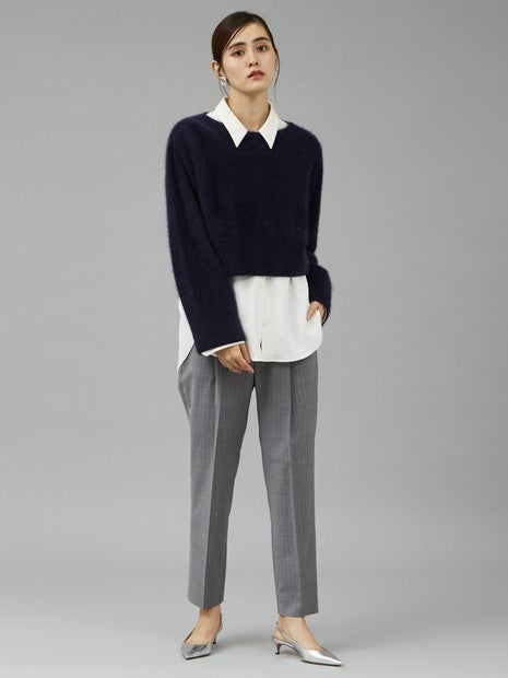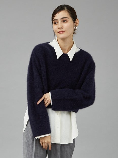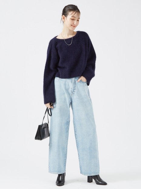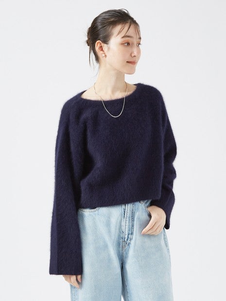 フォックスウールを使用したボートネックニットは、ふんわりとした素材感が魅力です。