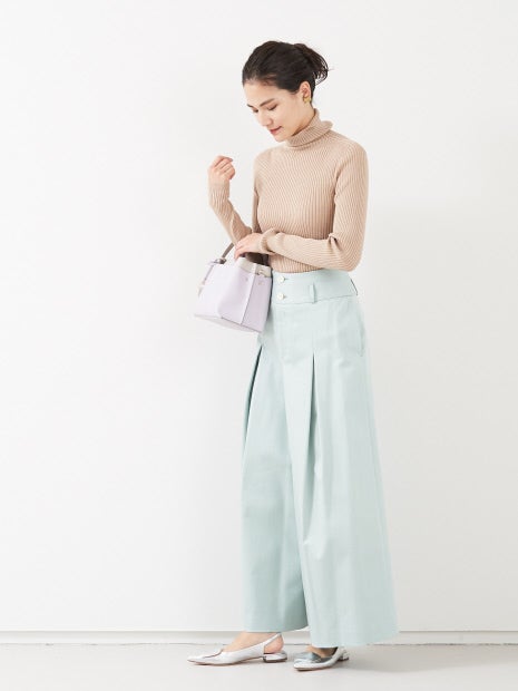 ベルトなしでも通勤シーンにお使いできるようきちんと感を演出。細身のトップスと合わせてパンツの美脚ラインを強調した着こなしがオススメです!