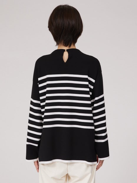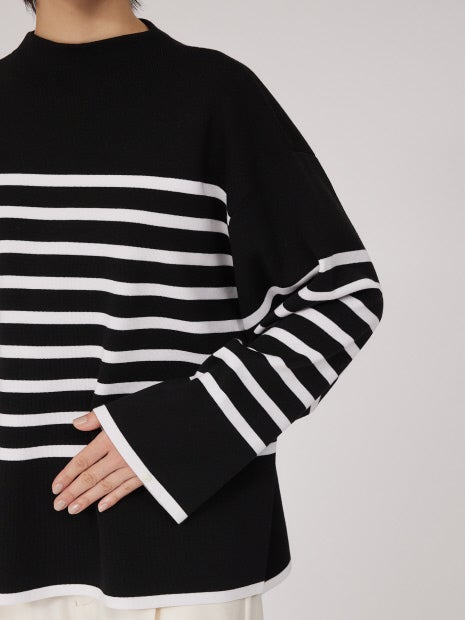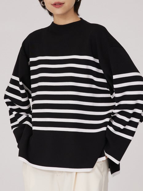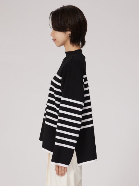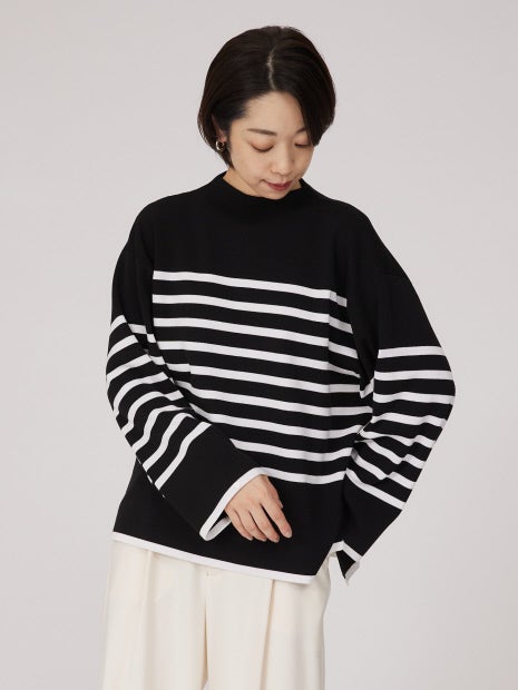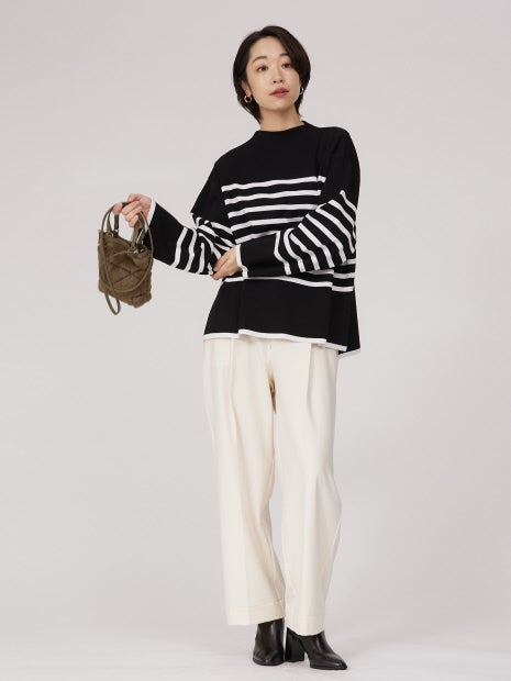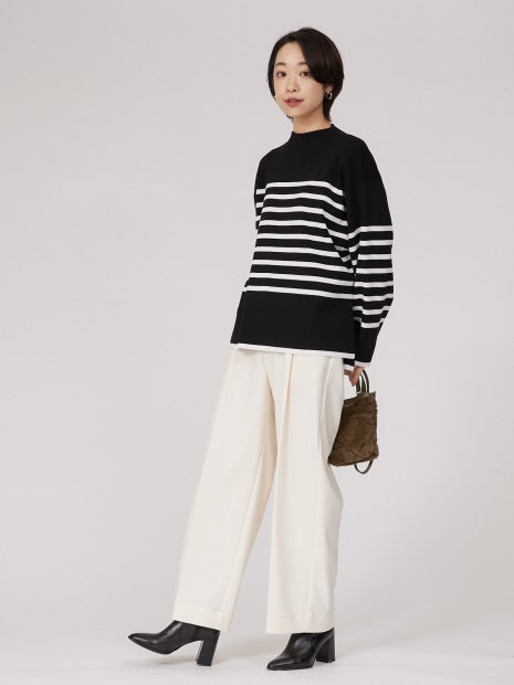 オーバーシルエットながら、首元をセミハイネックにしたことで、きちんと感もプラス。