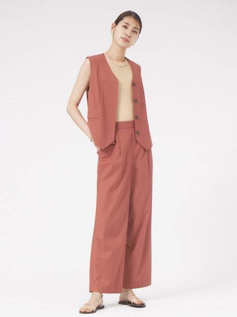 ウエストのタックが腰回りをすっきり見せ、バックのゴムがストレスフリーな穿き心地を実現。