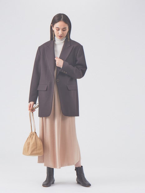 細身のニット(NO,32430040009)やタートルネックのニット(No.32430040008)とレイヤードするだけで、スタイリングが完成するワンピース。