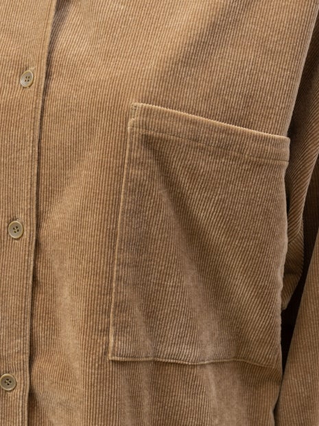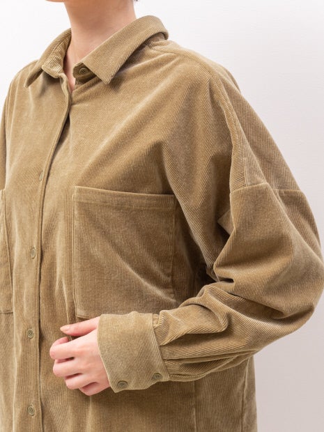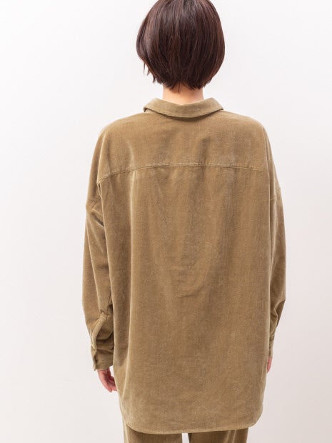 コーデュロイライクなジャージー素材を使用したオーバーサイズシャツ。