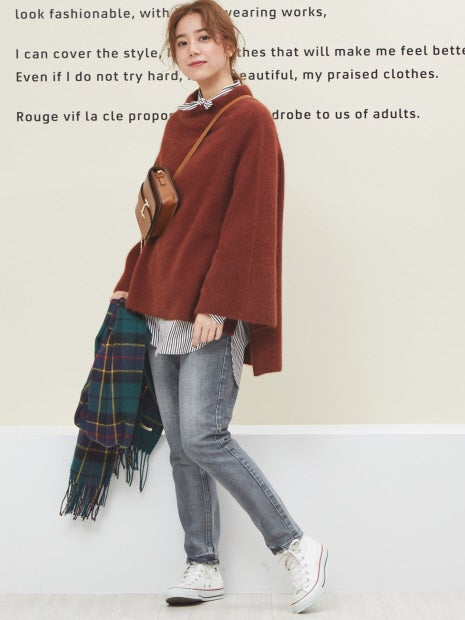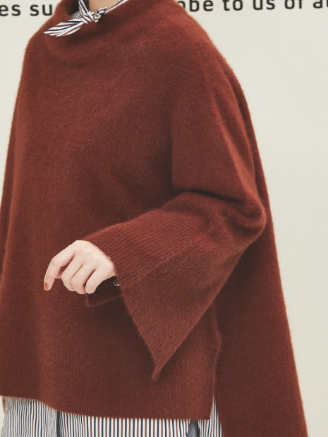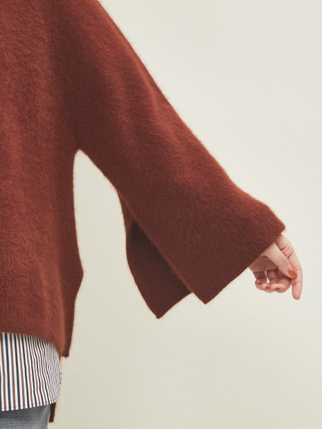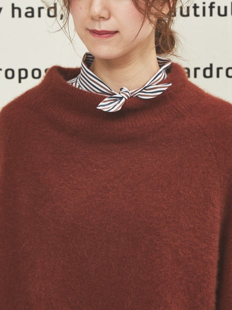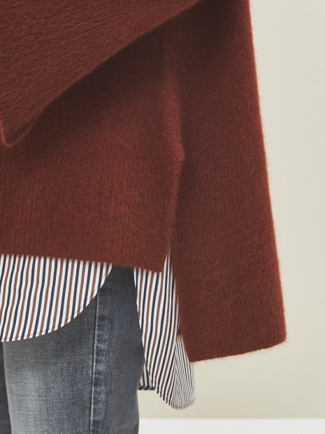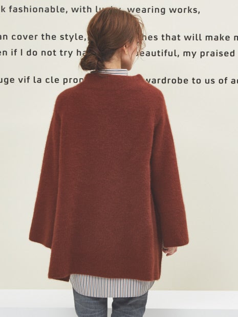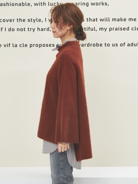 毛足が長いフォックス混の糸を使用したニットポンチョ。