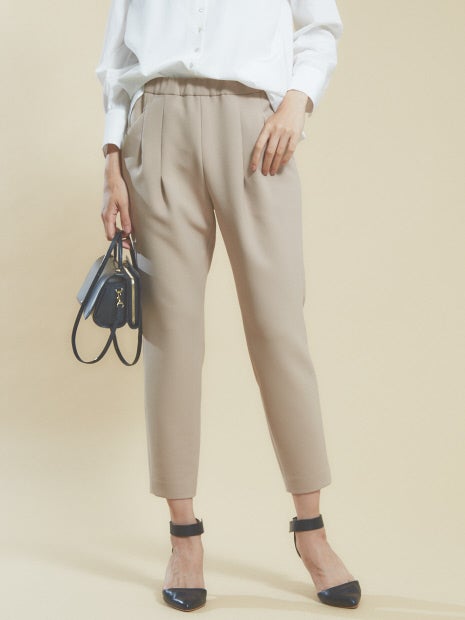 *Detail*こちらは抜け感を作り、こなれた足元をメイクする8.5分丈。3サイズ展開から5サイズ展開まで広げ、よりぴったりのサイズ感で穿いて頂けるようになりました!腰回りはゆとりがあり、先に向かって細身になるテーパードシルエットは、脚の形を問わず美脚ラインをメイクしてくれます。*Coordinate*ベーシックなテーパードパンツは、お仕事から休日のお出かけまで幅広いシーンで活用。8.5分丈ならブーツとの相性も良いので、着こなしの幅が広がります♪