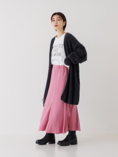 ニュアンスのあるゆったりニットでも、コンパクトなリブニットでも合わせやすく、ON・OFFで活躍。セミマットな光沢感でロンTやスウェットと合わせてもカジュアル過ぎずに大人っぽい印象に。また毛足のあるニットとも相性抜群で素材感にコントラストがつき、着映えます!