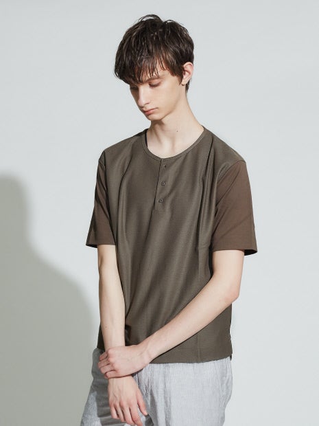 異素材切替カルぜヘンリーネック 半袖Tシャツ