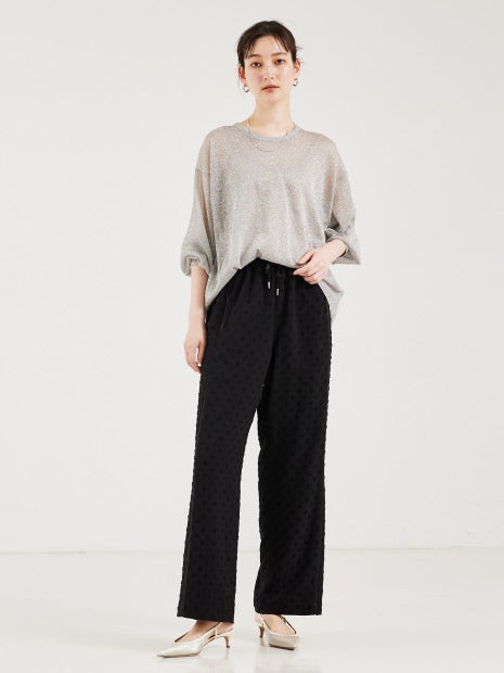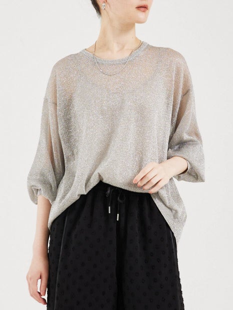 ゆるっとしたシルエットで軽やかに仕立てたラメシアーニット。