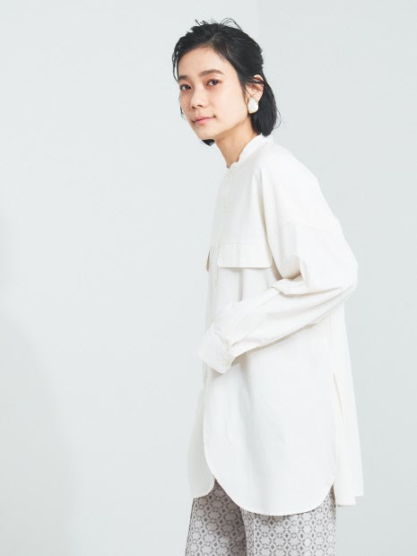 バンドカラーデザインでトレンド感とシャープさをプラスした春のシャツブラウス。