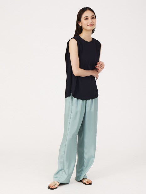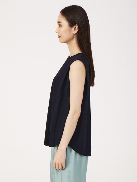 肩にタックを施し、ショルダーポイントをつけ、シンプルながらサマ見えを叶えます。
