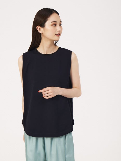 ストレッチ性のある素材を目を詰めて編むことにより、綺麗な表面感で仕上げたサマーニット。