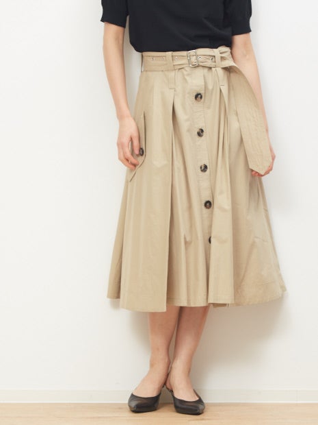 トレンチコートのディティールを取り入れたスカートオンスカートの様な立体的ディテールが楽しい一枚です。