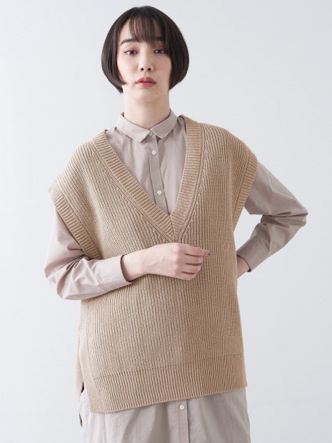 トップスにプラスするだけでおしゃれ度が高まる、ニットベスト。